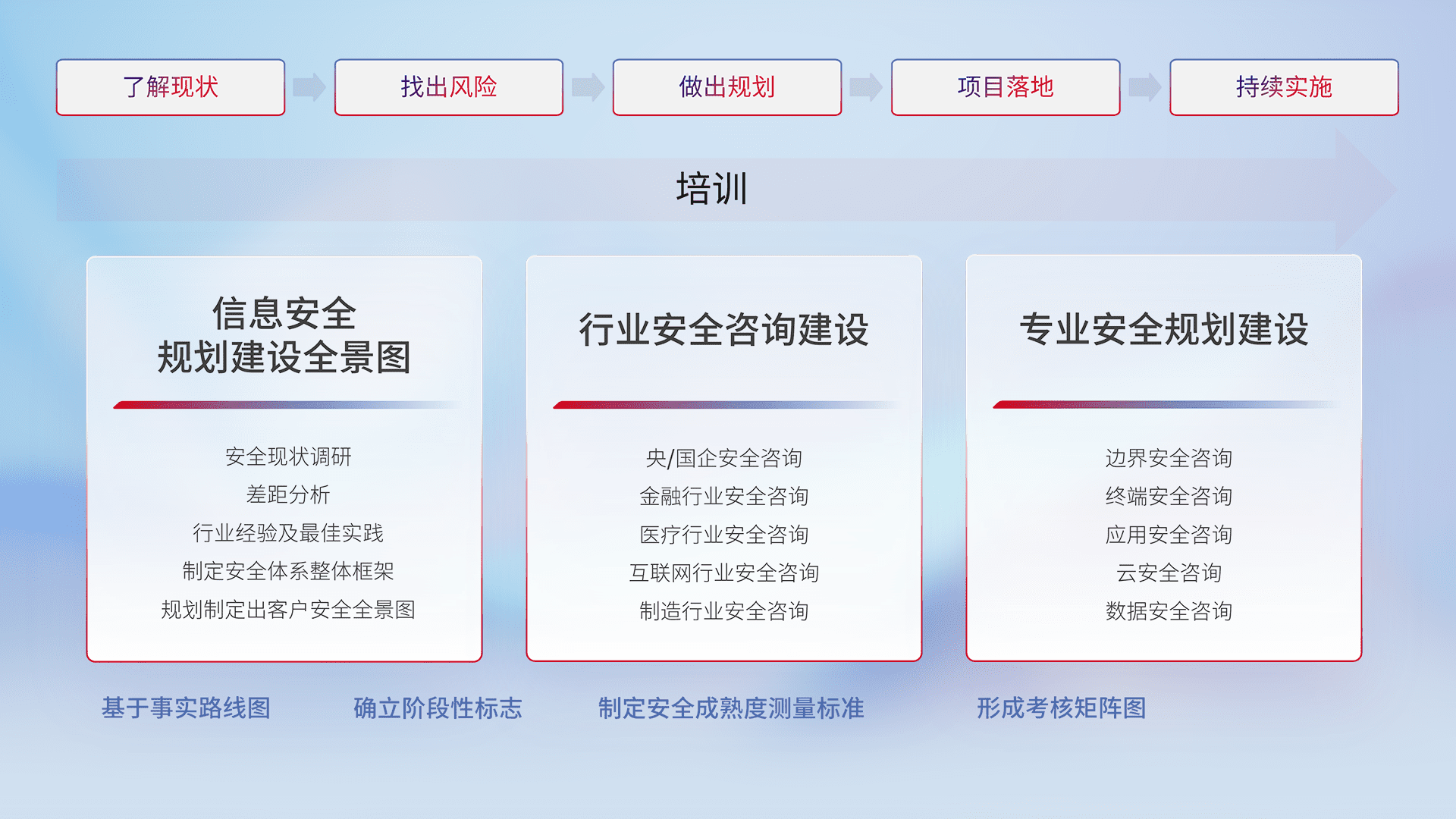 通过专业的法律咨询解读、、合规架构体现、、差异化解决方案、、测试实施支持等服务,,为客户量身打造等保合规体系。。。